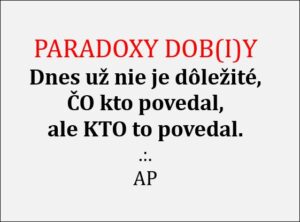 ZA KOHO KOPEŠ? (Ak nie si náš, potom musíš byť ich) Dnes mi ďalšia istá osoba verejne napísala: – Za koho vlastne kopete? Pobavila ma tá britká otázka. Predovšetkým: Nie som futbalista, ktorý sa dá hocikomu kúpiť, záleží len od výšky ponuky. A potom si natiahne jeho dres a tričko. Kým ho za to platia.. A kopú skôr do mňa… Dnešná doba je typická tým, [...]
